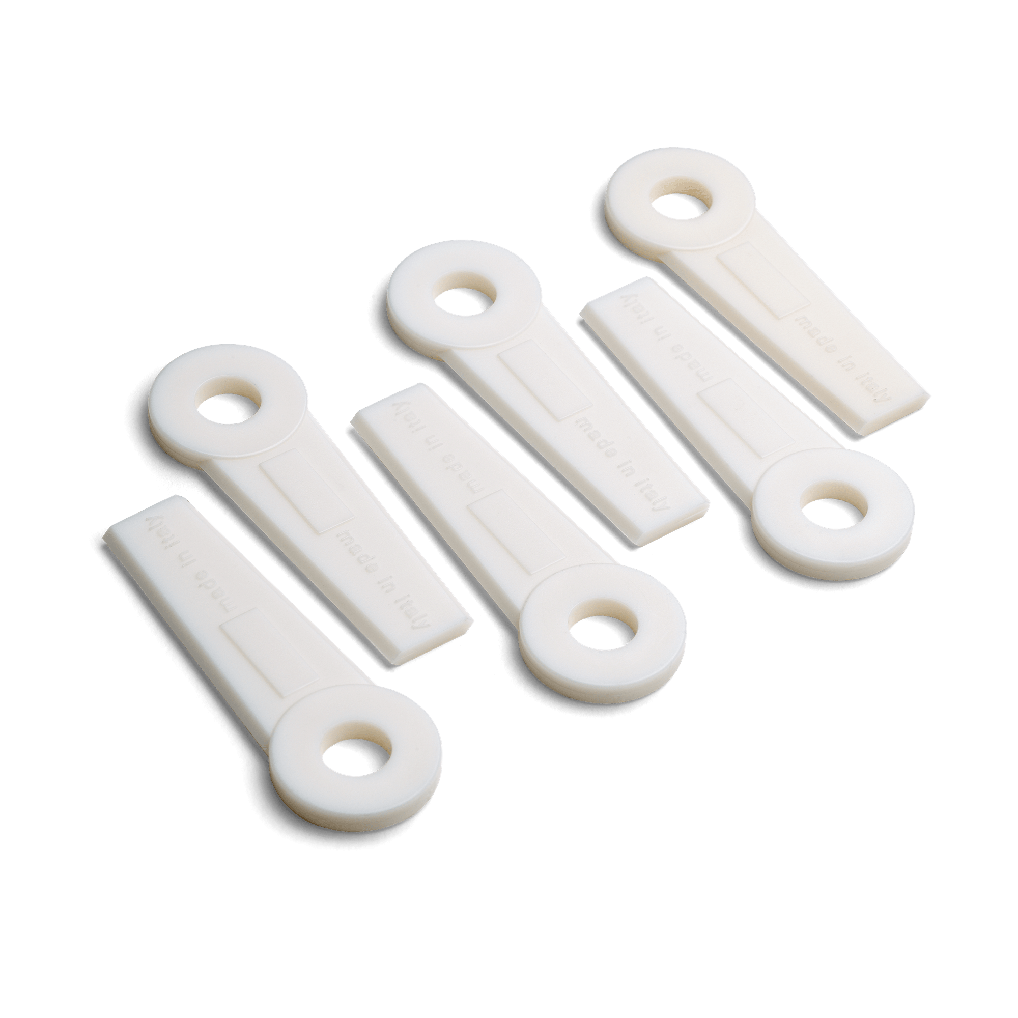 Lämplig för frodigt gräs och när det finns sten i terrängen. Väl synliga, utbytbara plastslagor, skonsamma mot träd och buskar. För 25 – 65 cc maskiner.
