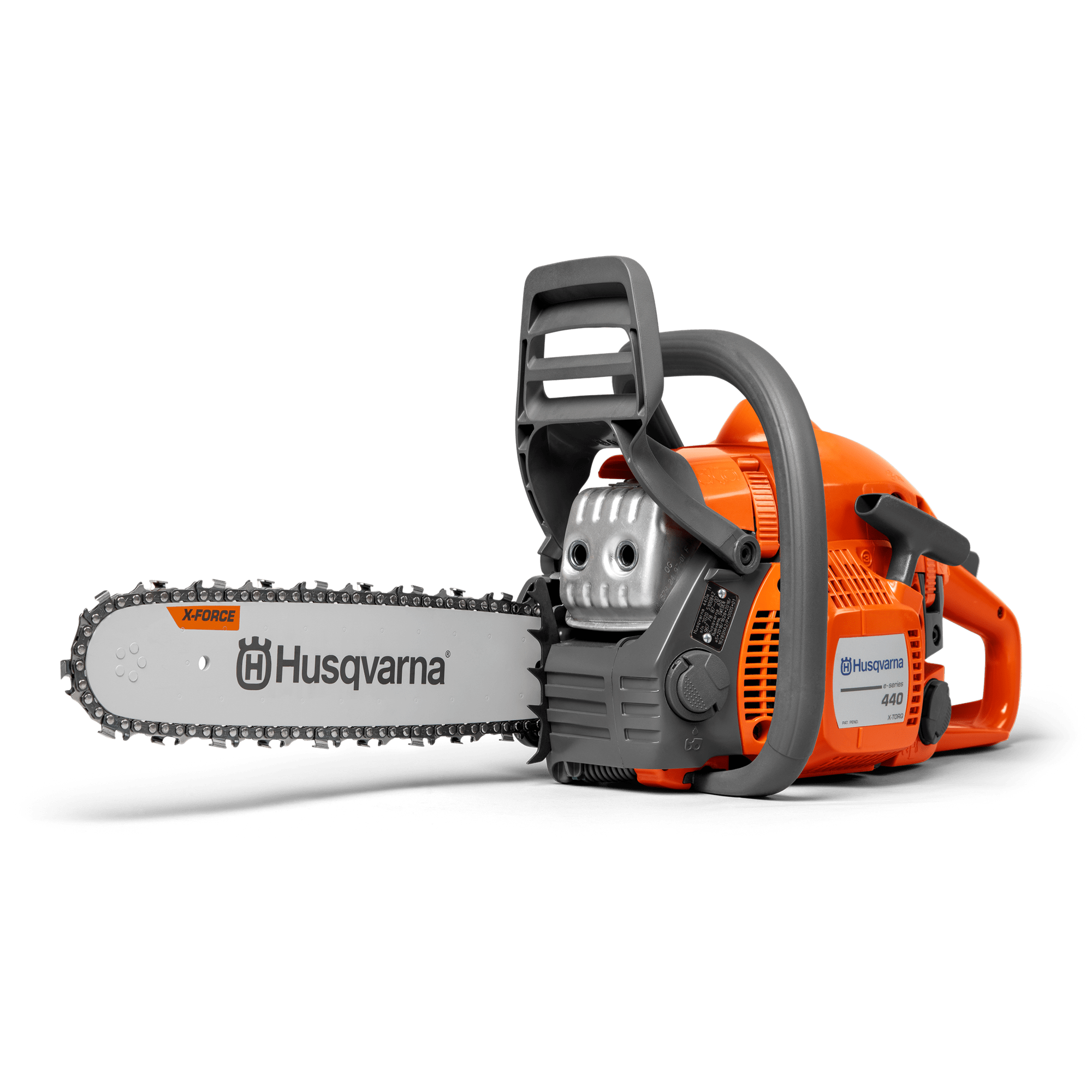 Husqvarna 440 II e är en lätt bensinmotorsåg som är mycket enkel att starta och använda, men ändå kraftfull nog att klara av de vanligaste uppgifterna på ägorna. Den bränslesnåla 40cc X-Torq®-motorn producerar hög effekt och stort vridmoment, medan bränslepumpen, de uppfällbara tanklocken, verktygslös kedjespännare, Smart Start® och den automatiskt returnerande strömbrytaren säkerställer enkel start och hantering.